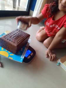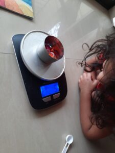 Measurement- We have been exploring weights and lengths of different objects using measuring tools and ‘big and small’ has been occupying Ahnas thoughts these days.