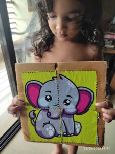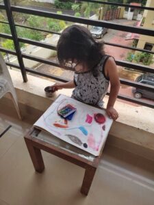 Ahna has been working on her chores as and when required but I have not been able to separate a time for chores yet. We’ll revisit a set time when she’s 3.5 years old probably. She is currently between dropping her nap and taking short naps. We have also tried quiet time. Currently, we go along with the flow of the day and her need on a daily basis. It’s frequently changing in this season of life. We organised her cupboard together. She uses the bottom shelves on her own and is able to clothe herself 90% of the time. She still needs help with the tee shirts sometimes, especially when they fit just right. So if you see my child in loose fitting clothes, you know why!
