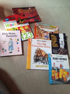 Another topic we picked up for science(Archeology) this month was roads and construction. Since there has been so much road repair work going on in Goa, it was inevitable to answer 135760384 questions about it on drives. So we made a short unit study and picked up some books from our home library, plonked them together, sat down and read about roads, soil, digging, earth, different digging tools and bones.